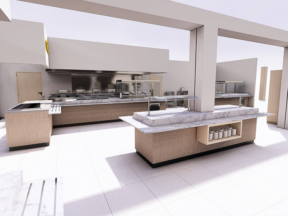 - Restructuration des espaces réceptifs (self service, salle de restaurant de l’établissement)